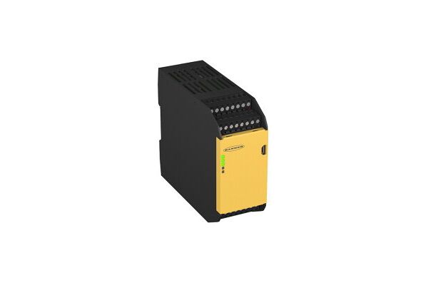 Safety Module, Programmable Safety Controller, Operating voltage 20…28 VDC, PLe acc. to ISO 13849‐1, Safety category 4 acc.to EN 954-1, SIL 3 acc. to IEC 61508 and IEC 62061, Settings made via pushbutton or software, 26 inputs, of which 8 can be reconfigured as outputs, 2 independent safety outputs, Intuitive programming interface, Operating voltage 24 VDC +‐20%, Protection class IP20, Freeware (included in delivery)