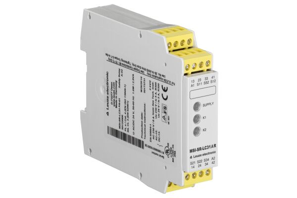 Safety relay designed for monitoring and controlling E-Stop circuits and safety door applications, ensuring high-level protection.