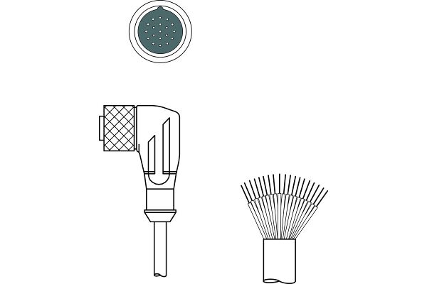 Angled M23 Female Connector to Open End Cable with PUR Sheathing.