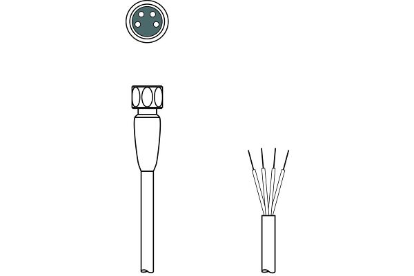 Connection cable with M8 axial female connector and open end.