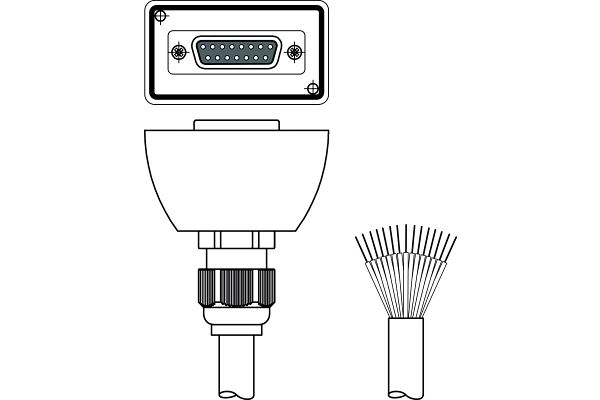 A durable connection cable featuring a Sub-D, axial, female connector and open end.