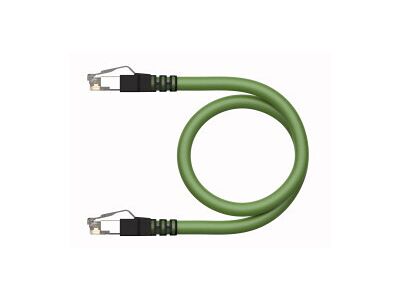 Industrial Ethernet Cable, Extension Cable, Voltage 30 V, Cable length 0.3 m, M12 male connector, straight, D-coded, M12 male connector, straight, Ethernet cable: 4-pin, AWG 22, CAT 5E, Jacket material: PUR, Jacket color: green, Shielding: overlapping aluminum foil, tinned copper wire, Jacket diameter: 6.5 mm, Suitable for drag chain use, Oil resistant acc. to IEC 60811-2-1 and UL13, Halogen free acc. to IEC 60754, Flame retardant acc. to IEC 60332-1-2 and UL FT2, RoHS compliant, PNO compliant, UL, Cable length: 0.3 m