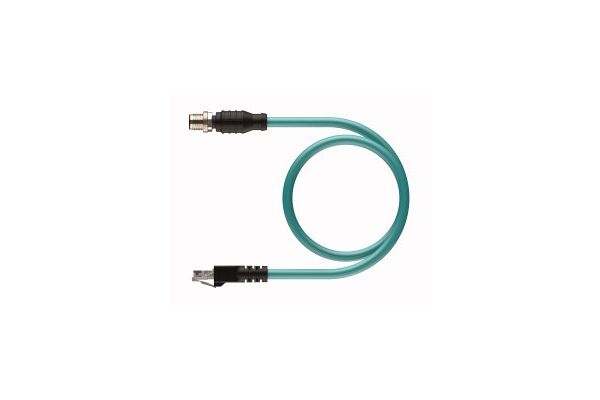 Industrial Ethernet Cable, Voltage 42 V, Cable length 10 m, M12 male connector, straight, 8-pin, X-coded, RJ45, Male, Straight, 8-pin, Shielded, Industrial Ethernet cable, Fieldbus type: Ethernet CAT6A, TPE jacket, teal, shielded, 4UTP × 26 AWG, -40 °C cold bending strength, Fire classes: UL 1666, UL 1061, Flexlife and C-Track approved