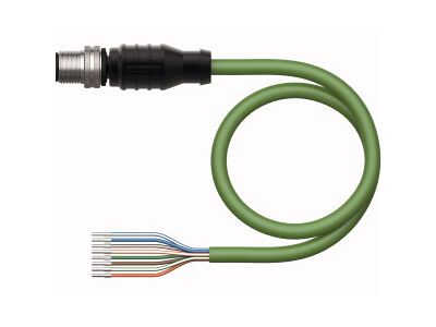 Industrial Ethernet Cable, Extension Cable, Voltage 60 V, Cable length 15 m, Ethernet cable: 8‐pin, AWG 24, shielded, Jacket material: TPE, color: green, Jacket diameter: 7.7 mm, Suitable for drag chain use, UL approval, RJ45 male connector, straight, 8-pin, M12 male, straight, 8-pin, Cable length: 15 m