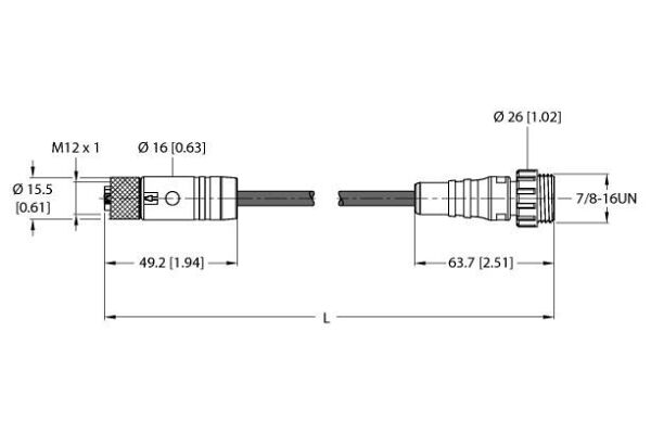 Supply Cable — M12 Power, Extension Cable, Rated voltage [Umax] 60 VDC / 50 VAC, Cable length 0.3 m, M12 female connector, L-coded, straight, 4-pin, 7/8" male connector, straight, 4-pin, Jacket material: PUR, Jacket color: black, Highly resistant to oils, coolants, lubricants and emulsions, Suitable for use in drag chains, Resistant to vibrations and shocks, Flame retardant, Halogen-free, RoHS compliant, UL approval, Protection class: IP65, IP67, IP69K, Cable length: 0.3 m