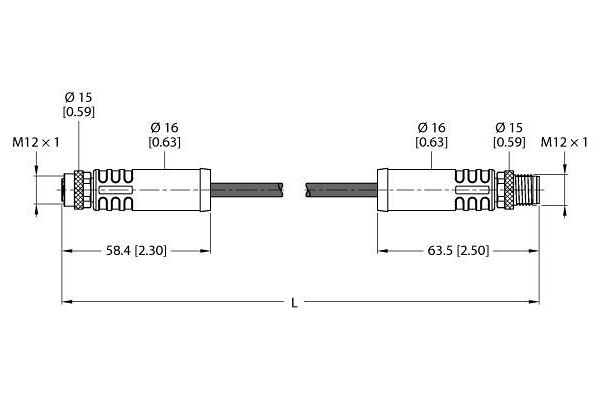 Supply Cable — M12 Power, Extension Cable, Rated voltage [Umax] 63 VDC / 50 VAC, Cable length 3 m, M12 female connector, L-coded, straight, 4-pin, M12 male connector, L-coded, straight, 4-pin, Jacket material: PUR, Jacket color: black, Highly resistant to oils, coolants, lubricants and emulsions, Suitable for drag chain use, Resistant to vibrations and shocks, Flame retardant, Halogen free, Norms: CE, UKCA and RoHS, Protection class: IP65, IP67, IP68, Cable length: 3 m