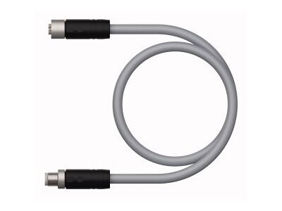 Supply Cable — M12 Power, Extension Cable, Rated voltage [Umax] 60 VDC / 50 VAC, Cable length 0.6 m, M12 power cable, L-coded, female connector, straight, 5-pin (4+FE), M12 power cable, L-coded, connector, straight, 5-pin (4+FE), Jacket material: PUR, Jacket color: gray, Highly resistant to oils, coolants, lubricants and emulsions, Suitable for use in drag chains, Resistant to vibrations and shocks, Flame retardant, Halogen-free, RoHS compliant, UL approval, Protection class: IP65, IP67, IP69K, Cable length: 0.6 m