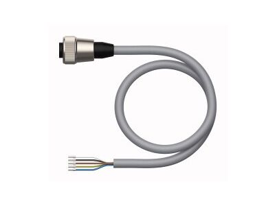 Power Supply Cable, PUR, Connection Cable, Voltage 240 V, Cable length 0.5 m, Power cable: 5 × 1.5 mm2, Jacket material: PUR, color: gray, Jacket diameter: 8.5 mm, Suitable for drag chain use, Oil resistant and flame retardant, Halogen free, End open, 7/8" female, angled, Cable length: 0.5 m