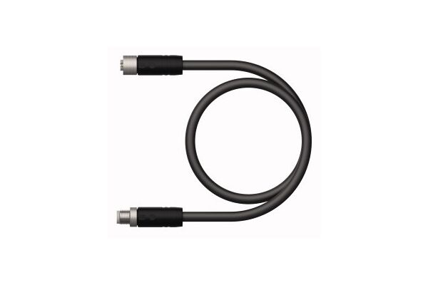 Supply Cable — M12 Power, Extension Cable, Rated voltage [Umax] 60 VDC / 50 VAC, Cable length 0.3 m, M12 female connector, T-coded, straight, 4-pin, M12 male connector, T-coded, straight, 4-pin, Jacket material: PUR, Jacket color: black, Highly resistant to oils, coolants, lubricants and emulsions, Suitable for use in drag chains, Resistant to vibrations and shocks, Flame retardant, Halogen-free, RoHS compliant, UL approval, Protection class: IP65, IP67, IP69K, Cable length: 0.3 m