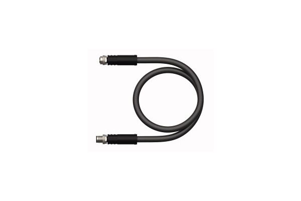 Supply Cable — M12 Power, Extension Cable, Rated voltage [Umax] 63 VDC / 50 VAC, Cable length 10 m, M12 female connector, L-coded, straight, 4-pin, M12 male connector, L-coded, straight, 4-pin, Jacket material: PUR, Jacket color: black, Highly resistant to oils, coolants, lubricants and emulsions, Suitable for drag chain use, Resistant to vibrations and shocks, Flame retardant, Halogen free, Norms: CE, UKCA and RoHS, Protection class: IP65, IP67, IP68, Cable length: 10 m