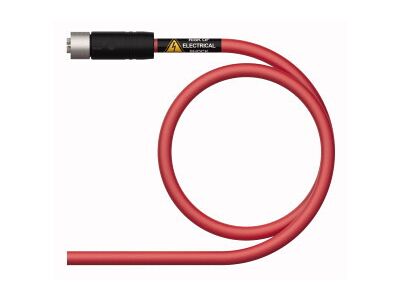 Supply Cable — M12 Power, Connection Cable, Voltage 600 V, Cable length 0.5 m, M12 female connector, S-coded, straight, 4-pin (3+PE), Sheathing material: PUR, Jacket color: red, Highly resistant against oils, coolants, lubricants and emulsions, Suitable for use in drag chains, Resistant to vibrations and shocks, Flame-retardant, Halogen-free, RoHS-compliant, Protection class: IP65, IP67, IP69K, Cable length: 0.5 m