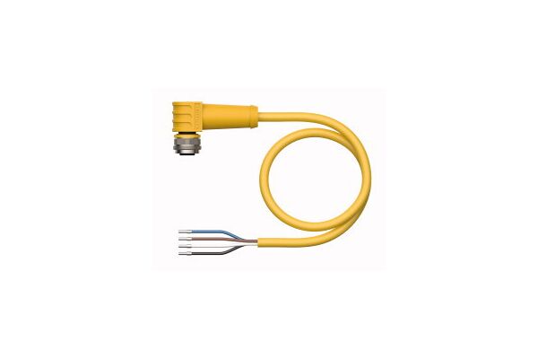Actuator and Sensor Cable, PUR, Connection Cable, Voltage 60 V, Cable length 10 m, Female M12, angled, 5-pin, Shield on coupling nut/screw, Jacket material: PUR, Jacket color: yellow, Grip color: yellow, Suitable for drag chain use, Resistant to chemicals, UV radiation and oils, Flame retardant (FT2 acc. to UL 1581, IEC 60332-2-2), Free from halogen, silicone, PVC and LABS, Particularly resistant to abrasion, Protection class: IP67, IP69K, Cable length: 10 m