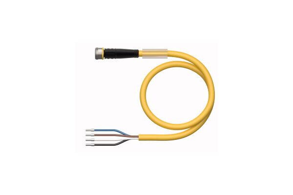 Actuator and Sensor Cable, PVC, Connection Cable, Rated voltage [Umax] 60 VDC / 50 VAC, Cable length 2 m, Female M8, straight, 4-pin, Jacket material: PVC, Jacket color: yellow, Resistant to chemicals and oils, Flame retardant, Resistant to acids and alkaline solutions, Resistant to microbes and hydrolysis, LABS free, Protection class: IP67, IP69K, Cable length: 2.0 m
