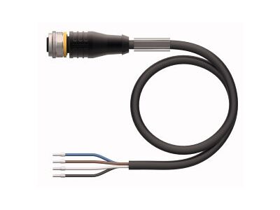 Actuator and Sensor Cable, PUR, Connection Cable, Voltage 250 V, Cable length 30 m, Female M12, angled, 4-pin, Shield on coupling nut/screw, Jacket material: PUR, shielded, Jacket color: black, Suitable for drag chain use, Resistant to chemicals, UV radiation and oils, Flame retardant (FT2 acc. to UL 1581, IEC 60332-2-2), Resistant to welding sparks, Free from halogen, silicone, PVC and LABS, Particularly resistant to abrasion, Protection class: IP67, IP69K, Cable length: 30 m