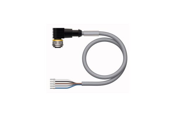 Actuator and Sensor Cable, PVC, Connection Cable, Voltage 60 V, Cable length 10 m, Female M12, angled, 5-pin, Jacket material: PVC, Jacket color: gray, Resistant to chemicals and oils, Flame retardant, Resistant to acids and alkaline solutions, Resistant to microbes and hydrolysis, LABS free, Protection class: IP67, IP69K, Cable length: 10 m