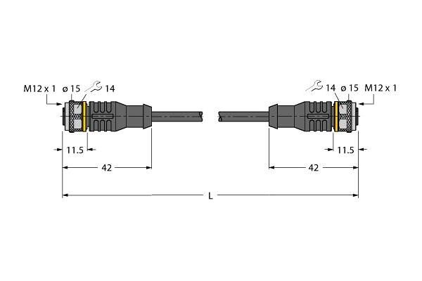 WKC4T-0.5-RSC4T/TEL Actuator and Sensor Cable, PVC, Extension Cable
