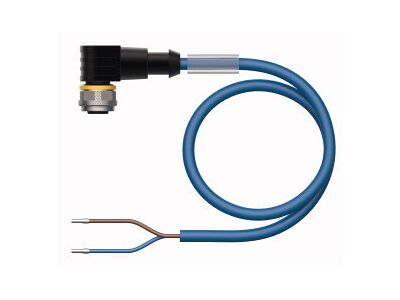 Actuator and Sensor Cable, PUR, Connection Cable, Voltage 250 V, Cable length 10 m, Female M12, straight, 2-pin, Jacket material: PUR, Jacket color: blue, Suitable for drag chain use, Resistant to chemicals, UV radiation and oils, Flame retardant (FT2 acc. to UL 1581, IEC 60332-2-2), Resistant to welding sparks, Free from halogen, silicone, PVC and LABS, Particularly resistant to abrasion, Protection class: IP67, IP69K, Cable length: 10 m