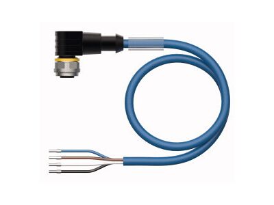 Actuator and Sensor Cable, PUR, Connection Cable, Voltage 250 V, Cable length 2 m, Female M12, angled, 2-pin, Jacket material: PUR, Jacket color: blue, Suitable for drag chain use, Resistant to chemicals, UV radiation and oils, Flame retardant (FT2 acc. to UL 1581, IEC 60332-2-2), Resistant to welding sparks, Free from halogen, silicone, PVC and LABS, Particularly resistant to abrasion, Protection class: IP67, IP69K, Cable length: 2.0 m