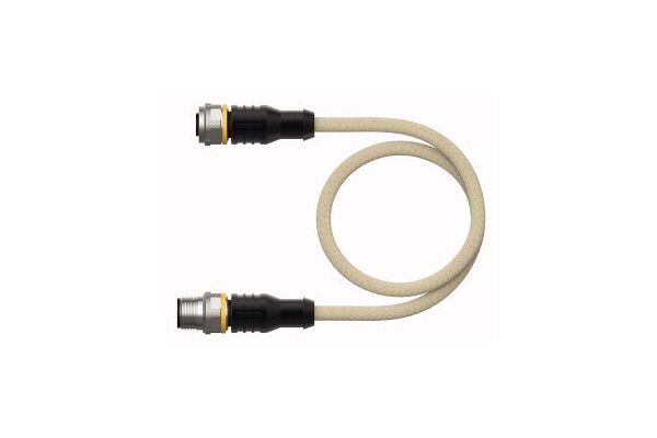 Weld-Splatter Resistant Actuator and Sensor Cable, Extension Cable, Voltage 60 V, Cable length 2 m, Female M12, straight, 5-pin, Male M12, straight, 5-pin, Jacket material: PUR jacketed with aramid fibers, Jacket color: yellow, Resistant to welding sparks, Flame retardant, Resistant to chemicals, UV radiation and oils, Free from halogen, silicone, PVC and LABS, Protection class: IP67, IP69K, Protective jacket material: aramid fibers, Tensile strength: 2923 MPa, Breaking strength: 333 N, Elongation at break: 3.6 %, Temperature peaks: up to +200 °C, Cable length: 2.0 m