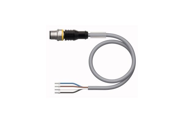 Actuator and Sensor Cable, PUR, Connection Cable, Voltage 250 V, Cable length 3 m, Male M12, straight, 4-pin, Jacket material: PUR, Jacket color: gray, Suitable for drag chain use, Resistant to chemicals, UV radiation and oils, Flame retardant (FT2 acc. to UL 1581, IEC 60332-2-2), Resistant to welding sparks, Free from halogen, silicone, PVC and LABS, Particularly resistant to abrasion, Protection class: IP67, IP69K, Cable length: 3 m