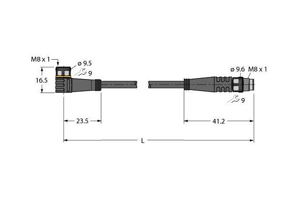 PKW3M-1-PSG3M/TEL Actuator and Sensor Cable, PVC, Extension Cable