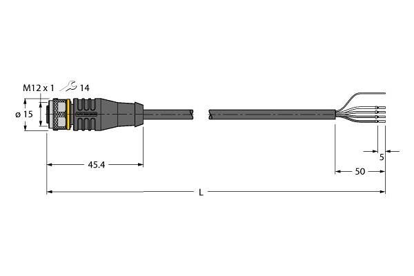 RKSV5.501T-15/TXL Actuator and Sensor Cable, PUR, Connection Cable