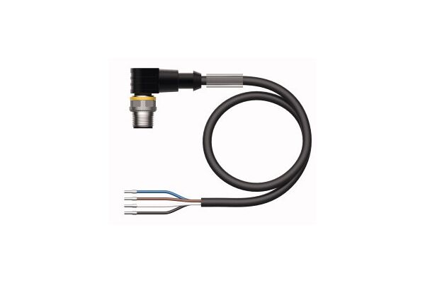 Actuator and Sensor Cable, PVC, Connection Cable, Voltage 250 V, Cable length 5 m, Male M12, angled, 4-pin, Jacket material: PVC, Jacket color: black, Resistant to chemicals and oils, Flame retardant, Resistant to acids and alkaline solutions, Resistant to microbes and hydrolysis, LABS free, Protection class: IP67, IP69K, Cable length: 5.0 m