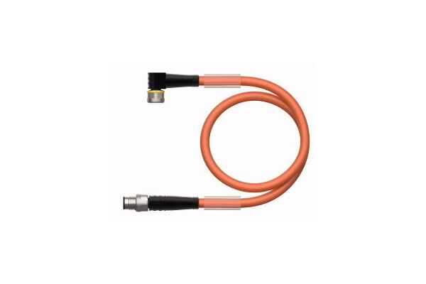 Actuator and Sensor Cable, PUR, Extension Cable, Rated voltage [Umax] 60 VDC / 50 VAC, Cable length 0.6 m, Female M8, angled, 3-pin, Male M8, straight, 3-pin, Jacket material: PUR, Jacket color: orange, Suitable for drag chain use, Resistant to chemicals, UV radiation and oils, Flame retardant (FT2 acc. to UL 1581, IEC 60332-2-2), Resistant to welding sparks, Free from halogen, silicone, PVC and LABS, Particularly resistant to abrasion, Protection class: IP67, IP69K, Cable length: 0.6 m