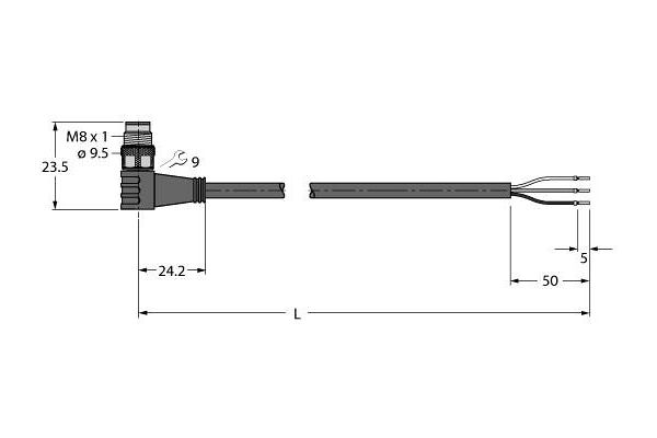 Actuator and Sensor Cable, PVC, Connection Cable, Rated voltage [Umax] 60 VDC / 50 VAC, Cable length 10 m, Male M8, angled, 3-pin, Jacket material: PVC, Jacket color: black, Resistant to chemicals and oils, Flame retardant, Resistant to acids and alkaline solutions, Resistant to microbes and hydrolysis, LABS free, Protection class: IP67, IP69K, Cable length: 10 m