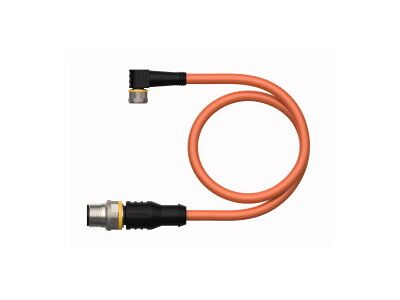 Actuator and Sensor Cable, PUR, Connection Cable, Rated voltage [Umax] 60 VDC / 50 VAC, Cable length 1 m, Male M8, straight, 4-pin, Jacket material: PUR, Jacket color: orange, Suitable for drag chain use, Resistant to chemicals, UV radiation and oils, Flame retardant (FT2 acc. to UL 1581, IEC 60332-2-2), Resistant to welding sparks, Free from halogen, silicone, PVC and LABS, Particularly resistant to abrasion, Protection class: IP67, IP69K, Cable length: 1.0 m