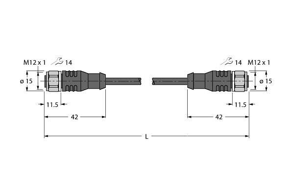 WKCV4.5T-20-WKCV4.5T/TFW Actuator And Sensor Cable, PP-EPDM, Extension Cable