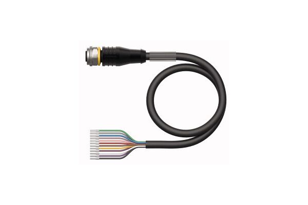 Actuator and Sensor Cable, PUR, Connection Cable, Voltage 30 V, Cable length 10 m, Female M12, straight, 12-pin, Shield on coupling nut/screw, Jacket material: PUR, shielded, Jacket color: black, Suitable for drag chain use, Resistant to chemicals, UV radiation and oils, Flame retardant (FT2 acc. to UL 1581, IEC 60332-2-2), Resistant to welding sparks, Free from halogen, silicone, PVC and LABS, Particularly resistant to abrasion, Protection class: IP67, IP69K, Cable length: 10 m