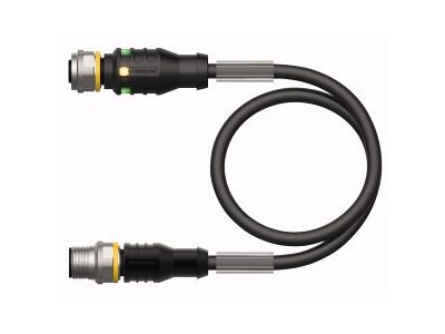Actuator and Sensor Cable, PVC, Extension Cable, Voltage 250 V, Cable length 20 m, Female M12, straight, 4-pin, Shield on coupling nut/screw, Male M12, straight, 4-pin, Jacket material: PVC, shielded, Jacket color: black, Resistant to chemicals and oils, Flame retardant, Resistant to acids and alkaline solutions, Resistant to microbes and hydrolysis, LABS free, Protection class: IP67, IP69K, Cable length: 20 m
