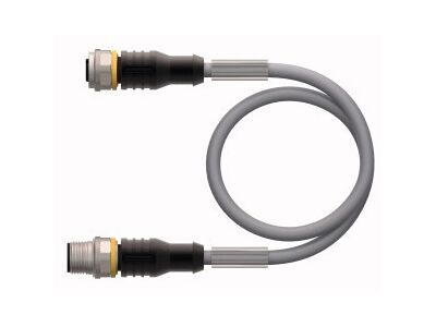 Actuator and Sensor Cable, PUR, Extension Cable, Rated voltage [Umax] 30 VDC, Cable length 20 m, M12 female connector, straight, 3-pin, With 2-color LED (PNP, yellow, green), all-round visibility, Male M12, straight, 3-pin, Jacket material: PUR, Jacket color: black, Suitable for drag chain use, Resistant to chemicals, UV radiation and oils, Flame retardant (FT2 acc. to UL 1581, IEC 60332-2-2), Resistant to welding sparks, Free from halogen, silicone, PVC and LABS, Particularly resistant to abrasion, Protection class: IP67, IP69K, Cable length: 20 m