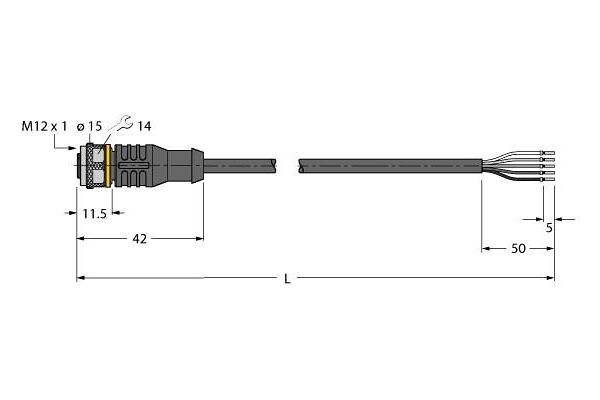 RKC4.5T-12.5-RSC4.5T/TXY6713 Actuator and Sensor Cable, PUR, Extension Cable