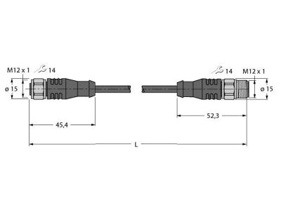 RKS4.4T-40-RSS4.4T/TXL Actuator and Sensor Cable, PUR, Extension Cable