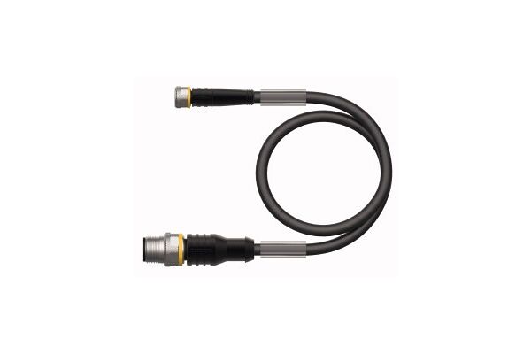 Actuator and Sensor Cable, PVC, Extension Cable, Rated voltage [Umax] 60 VDC / 50 VAC, Cable length 1 m, Female M8, straight, 3-pin, Male M12, straight, 3-pin, Jacket material: PVC, Jacket color: black, Resistant to chemicals and oils, Flame retardant, Resistant to acids and alkaline solutions, Resistant to microbes and hydrolysis, LABS free, Protection class: IP67, IP69K, Cable length: 1.0 m