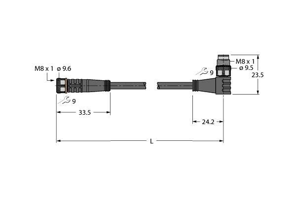 PKW3M-1-PSG3M/TEL Actuator and Sensor Cable, PVC, Extension Cable