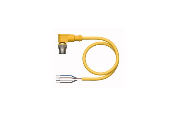 Actuator and Sensor Cable, PUR, Connection Cable, Voltage 60 V, Cable length 5 m, Male M12, angled, 5-pin, Jacket material: PUR, Jacket color: yellow, Grip color: yellow, Suitable for drag chain use, Resistant to chemicals, UV radiation and oils, Flame retardant (FT2 acc. to UL 1581, IEC 60332-2-2), Free from halogen, silicone, PVC and LABS, Particularly resistant to abrasion, Protection class: IP67, IP69K, Cable length: 5.0 m