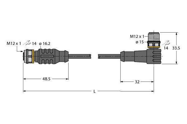 WKC4.4T-P7X3-5/TEL Actuator and Sensor Cable, PVC, Connection Cable