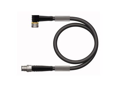 Actuator, Sensor and Supply Cable, PUR, Extension Cable, Rated voltage [Umax] 60 VDC / 50 VAC, Cable length 0.6 m, Female M8, angled, 4-pin, Male M8, angled, 4-pin, Jacket material: PUR, Jacket color: black, Suitable for drag chain use, Resistant to chemicals, UV radiation and oils, Flame retardant (FT2 acc. to UL 1581, IEC 60332-2-2), Resistant to welding sparks, Free from halogen, silicone, PVC and LABS, Particularly resistant to abrasion, Protection class: IP67, IP69K, Cable length: 0.6 m