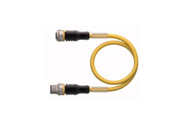 Actuator and Sensor Cable, PVC, Extension Cable, Voltage 250 V, Cable length 1 m, Female M12, straight, 3-pin, Male M12, straight, 3-pin, Jacket material: PVC, Jacket color: yellow, Resistant to chemicals and oils, Flame retardant, Resistant to acids and alkaline solutions, Resistant to microbes and hydrolysis, LABS free, Protection class: IP67, IP69K, Cable length: 1.0 m