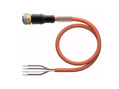 Actuator and Sensor Cable, PUR, Connection Cable, Voltage 250 V, Cable length 15 m, Female M12, straight, 4-pin, Jacket material: PUR, Jacket color: orange, Suitable for drag chain use, Resistant to welding sparks, Resistant to chemicals, UV radiation and oils, Flame retardant (FT2 acc. to UL 1581, IEC 60332-2-2), Free from halogen, silicone, PVC and LABS, Particularly resistant to abrasion, Protection class: IP67, IP69K, Cable length: 15 m