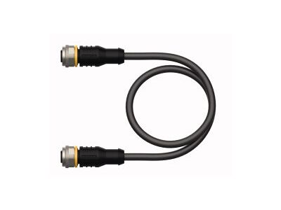 Actuator and Sensor Cable, PUR, Extension Cable, Voltage 250 V, Cable length 6 m, Female M12, straight, 4-pin, Shield on coupling nut/screw, Male M12, straight, 4-pin, Jacket material: PUR, shielded, Jacket color: black, Suitable for drag chain use, Resistant to chemicals, UV radiation and oils, Flame retardant (FT2 acc. to UL 1581, IEC 60332-2-2), Resistant to welding sparks, Free from halogen, silicone, PVC and LABS, Particularly resistant to abrasion, Protection class: IP67, IP69K, Cable length: 6.0 m