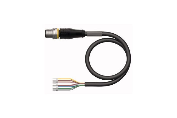 Actuator and Sensor Cable, PUR, Connection Cable, Voltage 30 V, Cable length 2 m, Male M12, straight, 8-pin, Shield on coupling nut/screw, Jacket material: PUR, shielded, Jacket color: black, Suitable for drag chain use, Resistant to chemicals, UV radiation and oils, Flame retardant (FT2 acc. to UL 1581, IEC 60332-2-2), Resistant to welding sparks, Free from halogen, silicone, PVC and LABS, Particularly resistant to abrasion, Protection class: IP67, IP69K, Cable length: 2.0 m