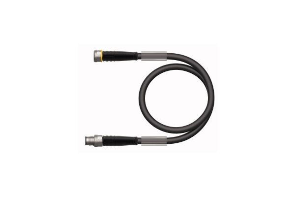 Actuator, Sensor and Supply Cable, PUR, Extension Cable, Rated voltage [Umax] 60 VDC / 50 VAC, Cable length 6 m, Female M8, straight, 4-pin, Male M8, straight, 4-pin, Jacket material: PUR, Jacket color: black, Suitable for drag chain use, Resistant to chemicals, UV radiation and oils, Flame retardant (FT2 acc. to UL 1581, IEC 60332-2-2), Resistant to welding sparks, Free from halogen, silicone, PVC and LABS, Particularly resistant to abrasion, Protection class: IP67, IP69K, Cable length: 6.0 m