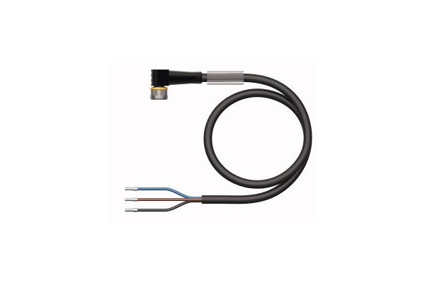 Actuator and Sensor Cable, PVC, Connection Cable, Rated voltage [Umax] 60 VDC / 50 VAC, Cable length 20 m, Female M8, angled, 3-pin, Jacket material: PVC, Jacket color: black, Resistant to chemicals and oils, Flame retardant, Resistant to acids and alkaline solutions, Resistant to microbes and hydrolysis, LABS free, Protection class: IP67, IP69K, Cable length: 20 m