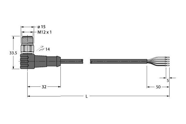 WKCV5T-5/TFW Actuator And Sensor Cable, PP-EPDM, Connection Cable