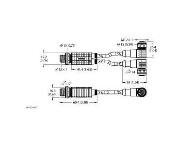 VBRS4.4-2WKC4T-1/1/TEL 2-Way Splitter, Y-Splitter with Cable, Male Connector M12 × 1 - 2 × Female Conne