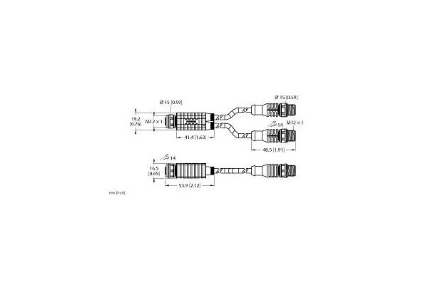 VBRK4.4-2WSC4T-5/5/TEL 2-Way Splitter, Y-Splitter with Cable, Female Connector M12 × 1 - 2 × Male Conne